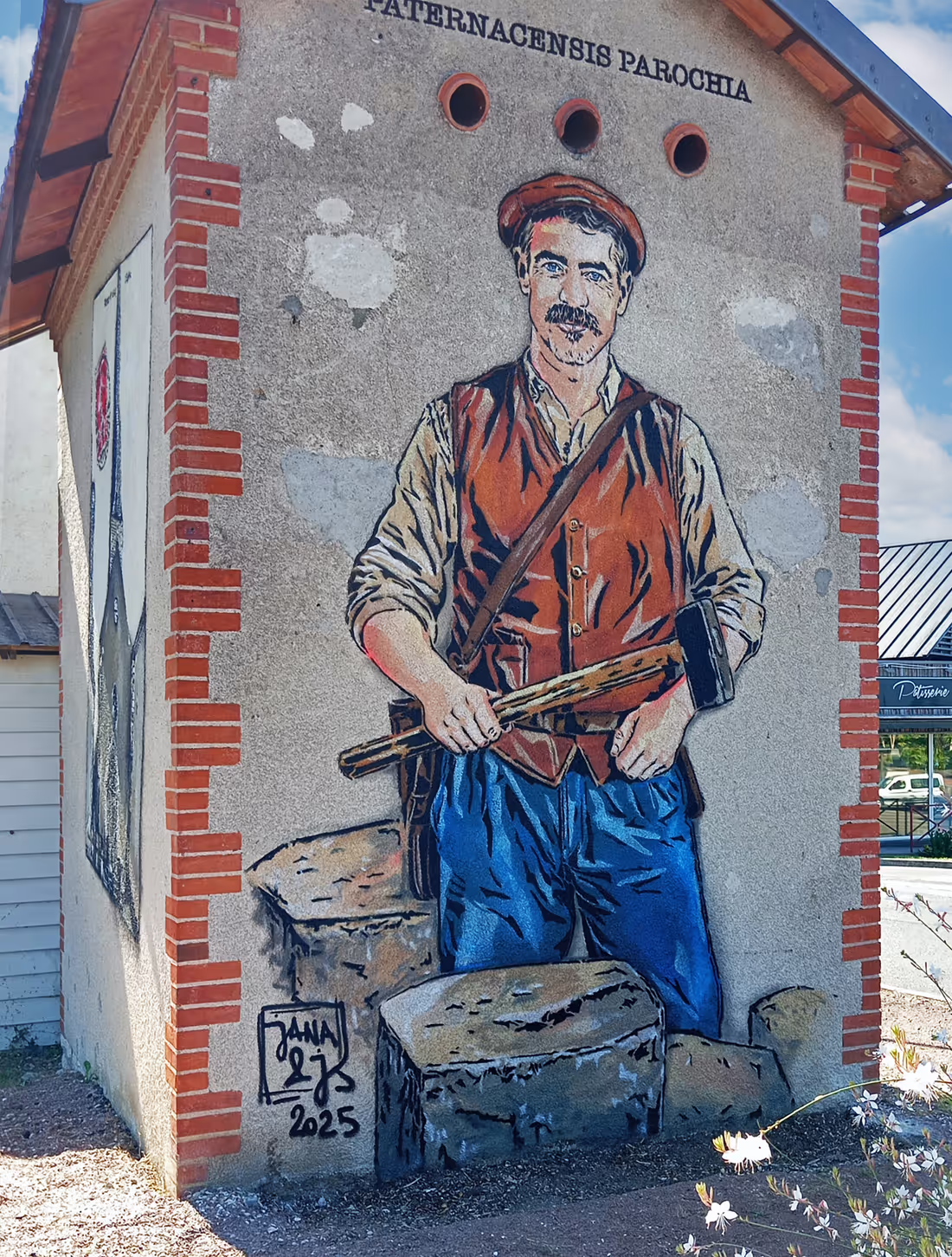 Les habitants du village sʼapproprient ce mur, y reconnaissent les bâtis et profitent dʼune œuvre des talentueux Jana et JS.